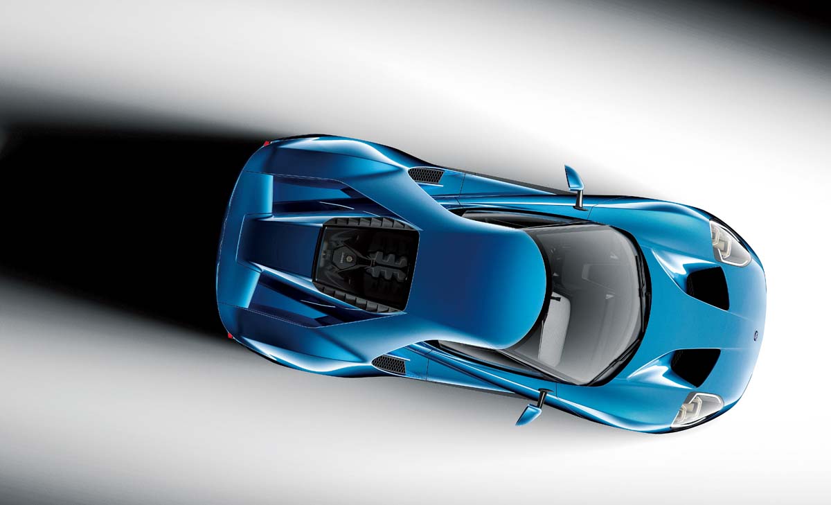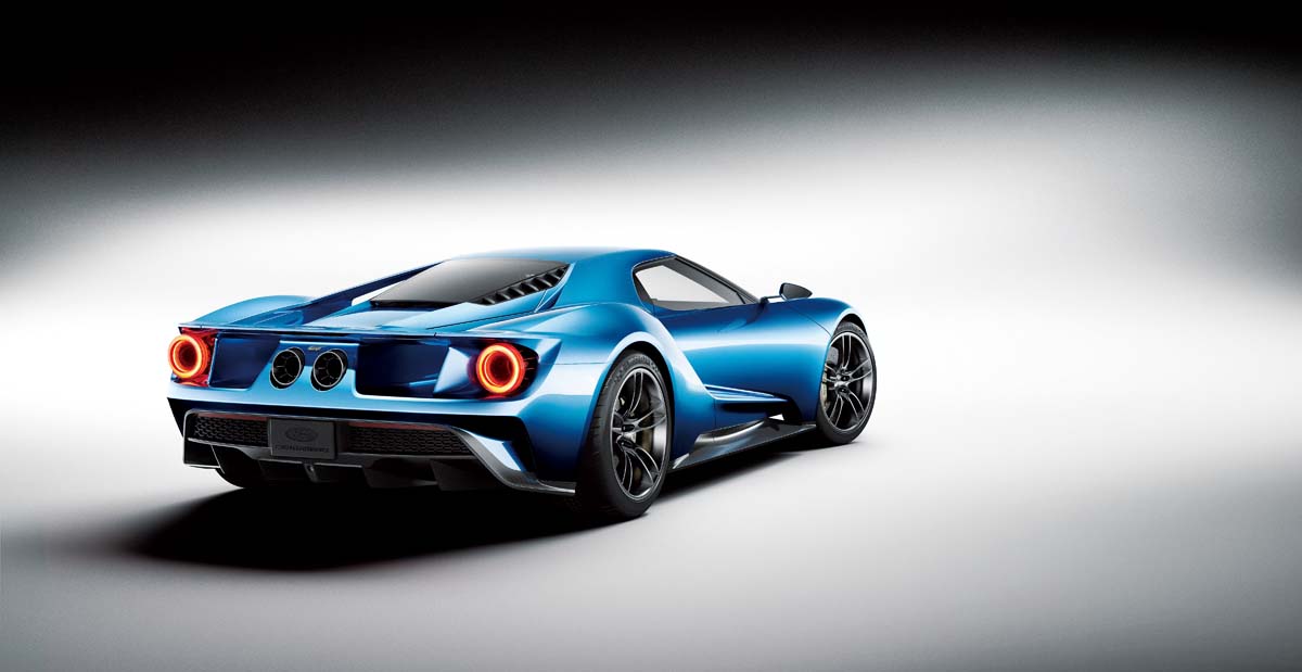 外觀方面,新一代GT採用大量折線及空力進氣口,營造出類似當代主流超跑的肌肉感。頭燈以雷射大燈科技構成,車頭下方為大型蜂巢狀水箱護罩,而上方則有2個大出風口,並於車側設計了提供中置引擎氣流的大型進氣口。同時,尾燈則以雙圓燈來鋪陳。輪圈搭載20吋鋁合金規格,並搭配了Michelin Pilot Super Sport Cup 2輪胎,以及Brembo碳纖維陶瓷複合煞車碟盤。另外,車門則為上開式設計。碳纖維車艙內有兩張賽車座椅,並有F1風格的多功能方向盤搭配液晶儀錶板。Ford原廠也為此車配備了SYNC 3多媒體資訊娛樂系統,同時採用QNX平台。雖然要到2016年底才正式量產,不過目前Ford已與Xbox One合作,讓新款GT提前在賽車遊戲Forza Motorsport 6中,與Shelby GT350 Mustang及F-150 Raptor同時登場。等不及的車迷可先享受駕馭虛擬Ford GT的感受。