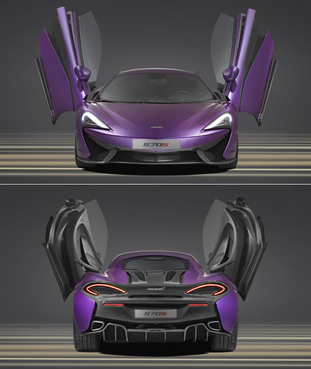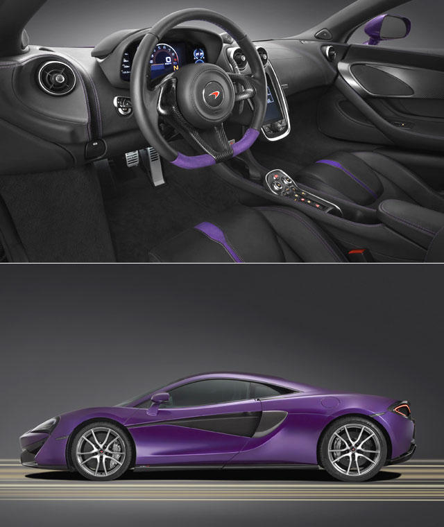 McLaren 570S Coupe才在4月紐約車展中發表,而這輛顏色銷魂的藍紫色570S Coupe,從外觀到動力其實跟570S Coupe標準車型沒有太大不同,同樣承襲670車系的設計元素,擁有超跑具備的單體碳纖維車架結構,只不過在車色方面使用特殊Mauvine Blue塗裝,刻意營造出570S Coupe的獨特性。