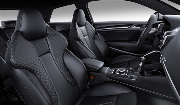 內裝方面在 A3 車系的基礎上添加了 S3 專屬套件,包括跑車型前座椅、三輻式真皮多功能方向盤、專屬鋁合金門檻/踏板以及 S 專屬排檔座,呈現出濃濃的跑車氣息;不過最搶眼之處莫過於標配的 12.3 吋 Virtual Cockpit 虛擬儀表板,提供豐富行車訊息並有專屬儀表畫面,還能與 7 吋 MMI Navigation plus 多媒體系統的中文衛星導航、Apple CarPlay 等功能連結,此外還配備 Bang & Olufsen 音響系統與全景玻璃天窗。