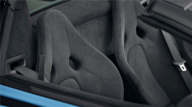 Track Pack 套件以車室內裝改變最大,擁有六種可選主題的 Alcantara 麂皮鋪陳,在方向盤、換檔撥片、中控臺飾板等各處皆看得到碳纖維的大量運用,另外換上兩座碳纖維賽車座椅,可以減輕達13kg。輪圈換為10爪輕量化鍛造輪圈,規格維持前19、後20吋配置,共可以減輕約15kg,排氣管也換為更輕、音浪更誘人的鈦合金材質,全車裡裡外外加起來總共可以減輕超過 33kg。