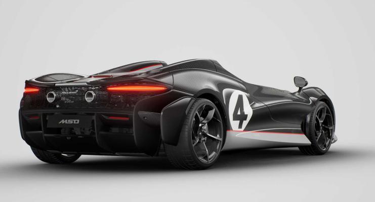 從外觀來看,採用了黑白雙色塗裝,有紅色線條進行點綴。新車延續了麥拿倫家族的中後置佈局和碳纖維單體結構車身,採用無風擋玻璃和無車頂的開放式座艙設計,同時新車還保留了麥拿倫標誌性的蝴蝶門開啓設計。