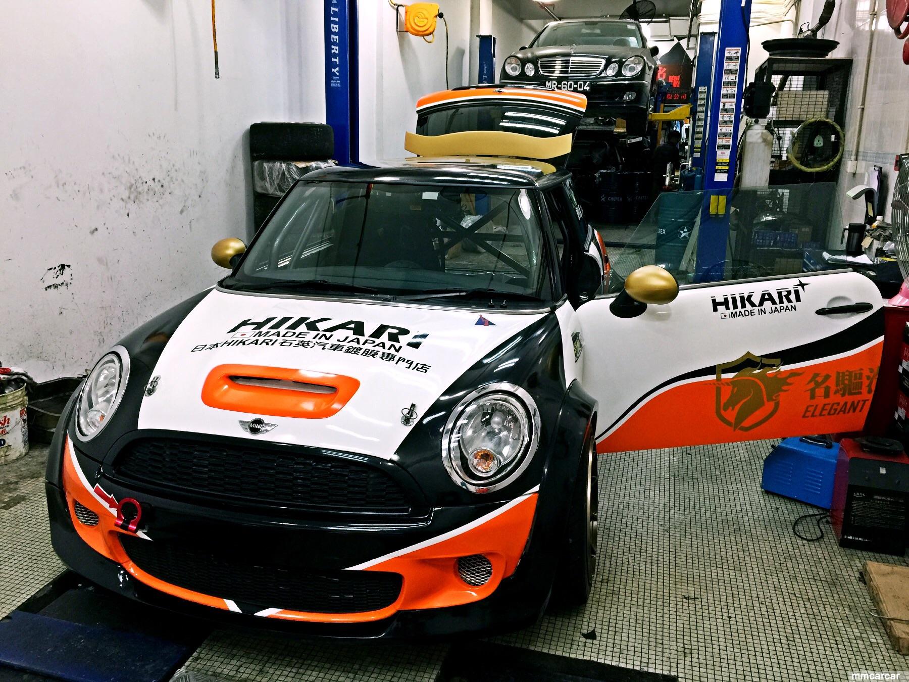 本公司贊助本屆澳門格蘭披治大賽車 澳門電訊杯之賽車Mini Cooper 1.6T。 特別設計之車花搭配Glass coating立刻令到賽車明亮特出。