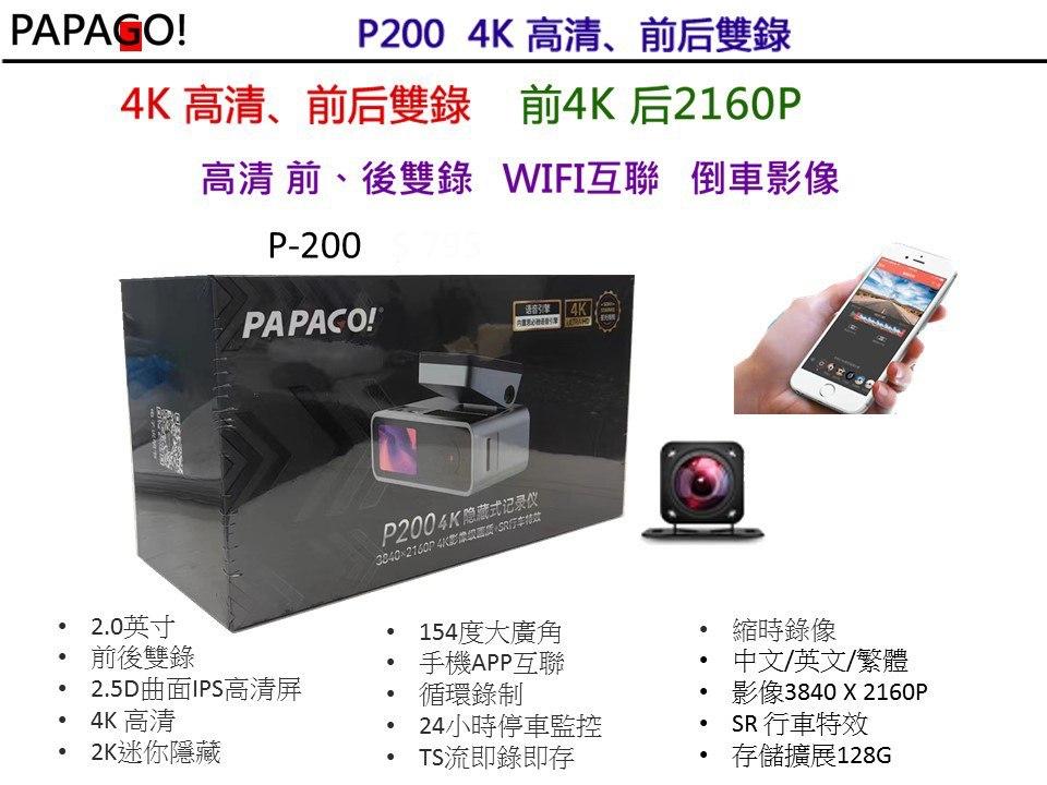 PAPACO. P200 4k (新貨) 3840 x 2160P 4K 前後行車記錄 銓盈汽車裝備 澳門新橋區惠愛街54-56号地下及閣樓 電話:28358435 28259436。62375676 http://ciauto.mmcarcar.com Wechat : chunieng Facebook : 銓盈汽車裝備 (改裝) 澳門銓盈汽車精品。(用品)